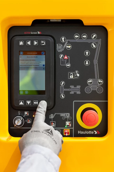 • Прибор самодиагностики Haulotte Activ'Screen на нижнем пульте управления, с цветным дисплеем
