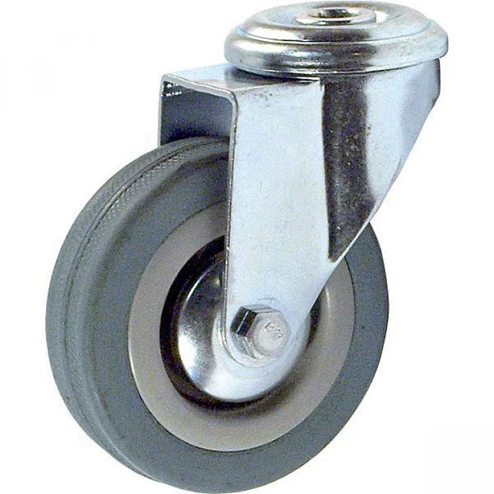 Колесная опора аппаратная поворотная, крепление под болт (серая резина, полипропиленовый обод, в оси - подшипник скольжения)