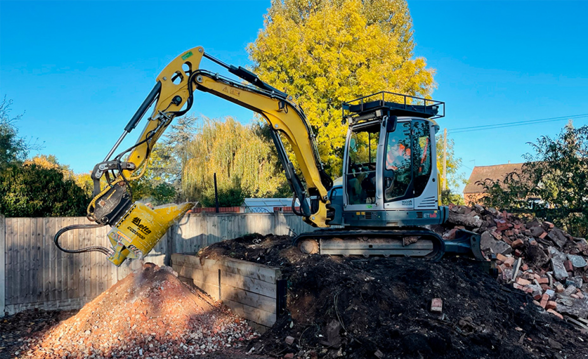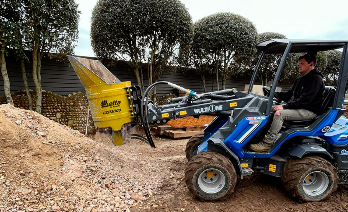 Новый производительный ковш-дробилка (конусная) Delta CCB 3000 с крутящим моментом до 10112 Нм обеспечивает простой, эффективный и экономичный способ переработки небольшого строительного мусора в пригодный для использования заполнитель (щебень).