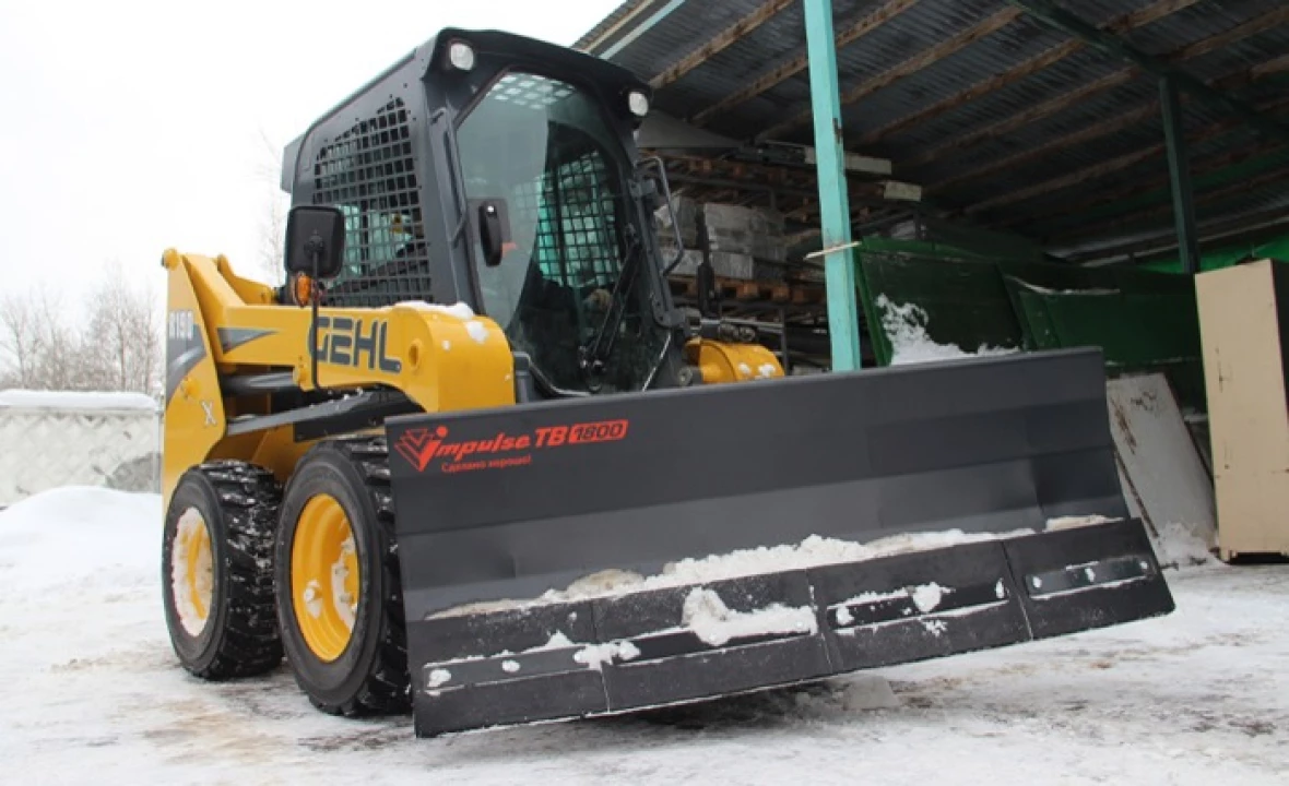Поворотный отвал IMPULSE TB1800 - навесное оборудование для фронтальных мини-погрузчиков Bobcat, JCB, Komatsu и других брендов. Оборудование используется коммунальными службами для очистки снега с дорог, парков и других территорий.
