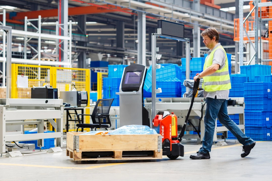 Самоходные тележки начального уровня с грузоподъемностью от 1200 до 2000 кг. Аккумуляторная батарея является съемной.
