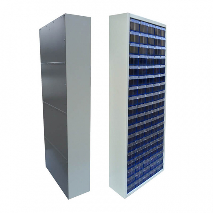 Серый (шкаф), синий/прозрачный (коробы)