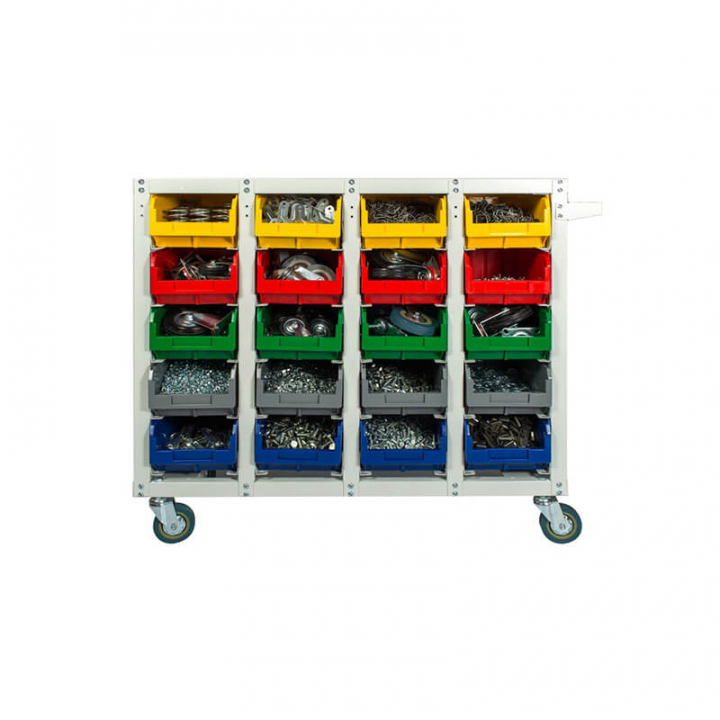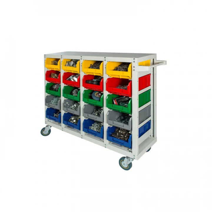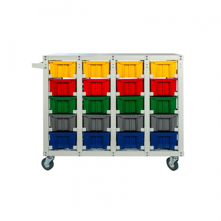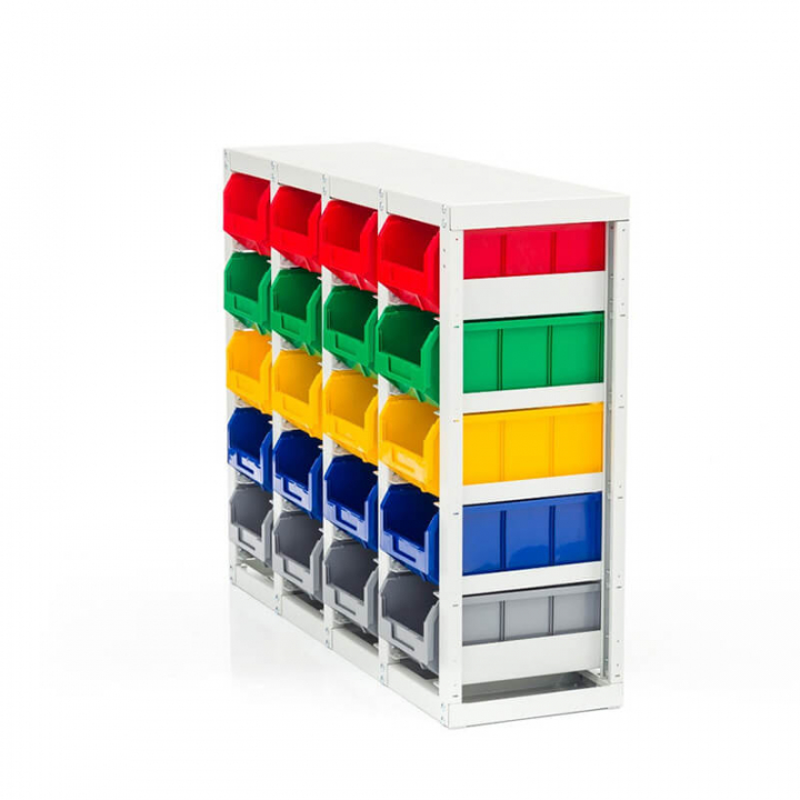 Серый (стеллаж), цветной (ящики)