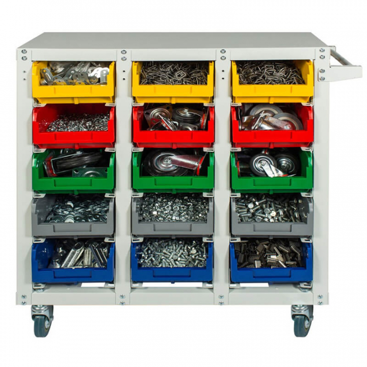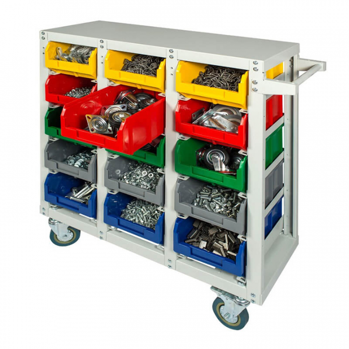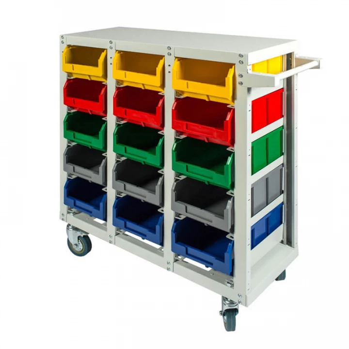 Серый (стеллаж), цветной (ящики)