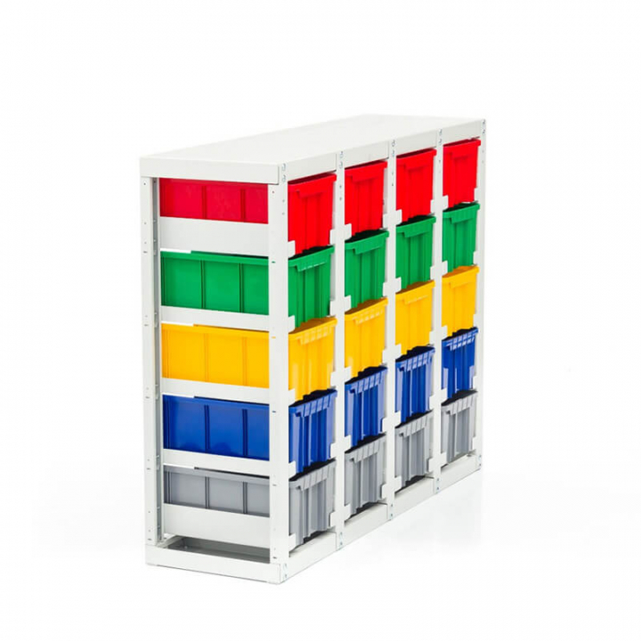 Серый (стеллаж), цветной (ящики)