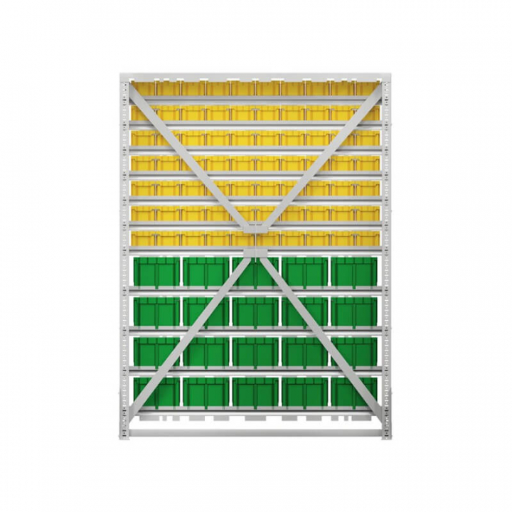 Серый (рама), желтый/зеленый (ящики)