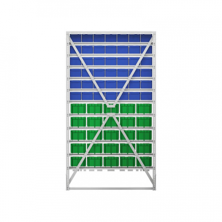 Серый (рама), синий/зеленый (ящики)
