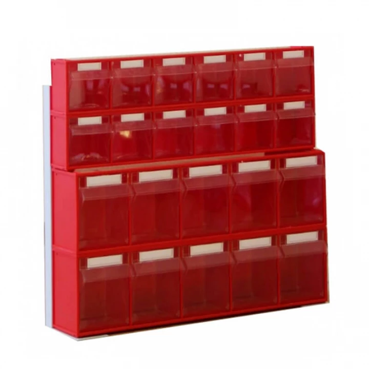 Серый (рама), красный/прозрачный (коробы)