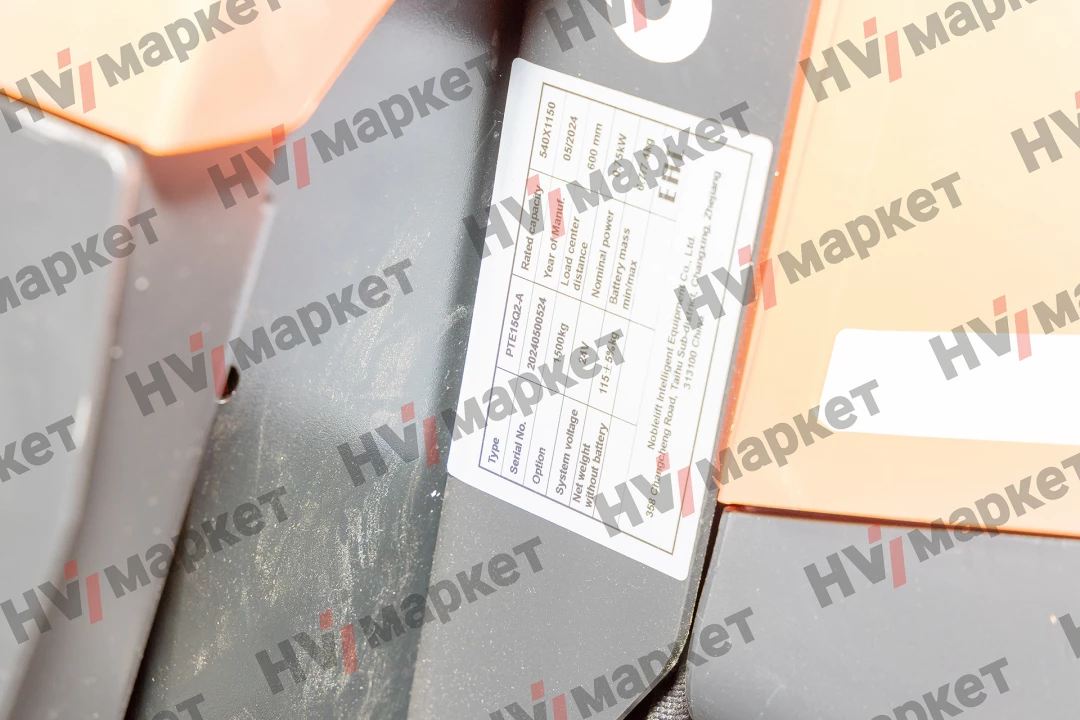PTE15Q2-A 1500KG, Fork size: 540/685*1150mm, Single roller, 24V/20AH Li-ion Battery, 5A Charger, Chinese Controller, no stability casters, Plastic drive wheel cover