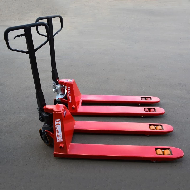 Тележку гидравлическую с узкими вилами выгодно приобретать у производителя – завода OXLIFT. Мы предлагаем: